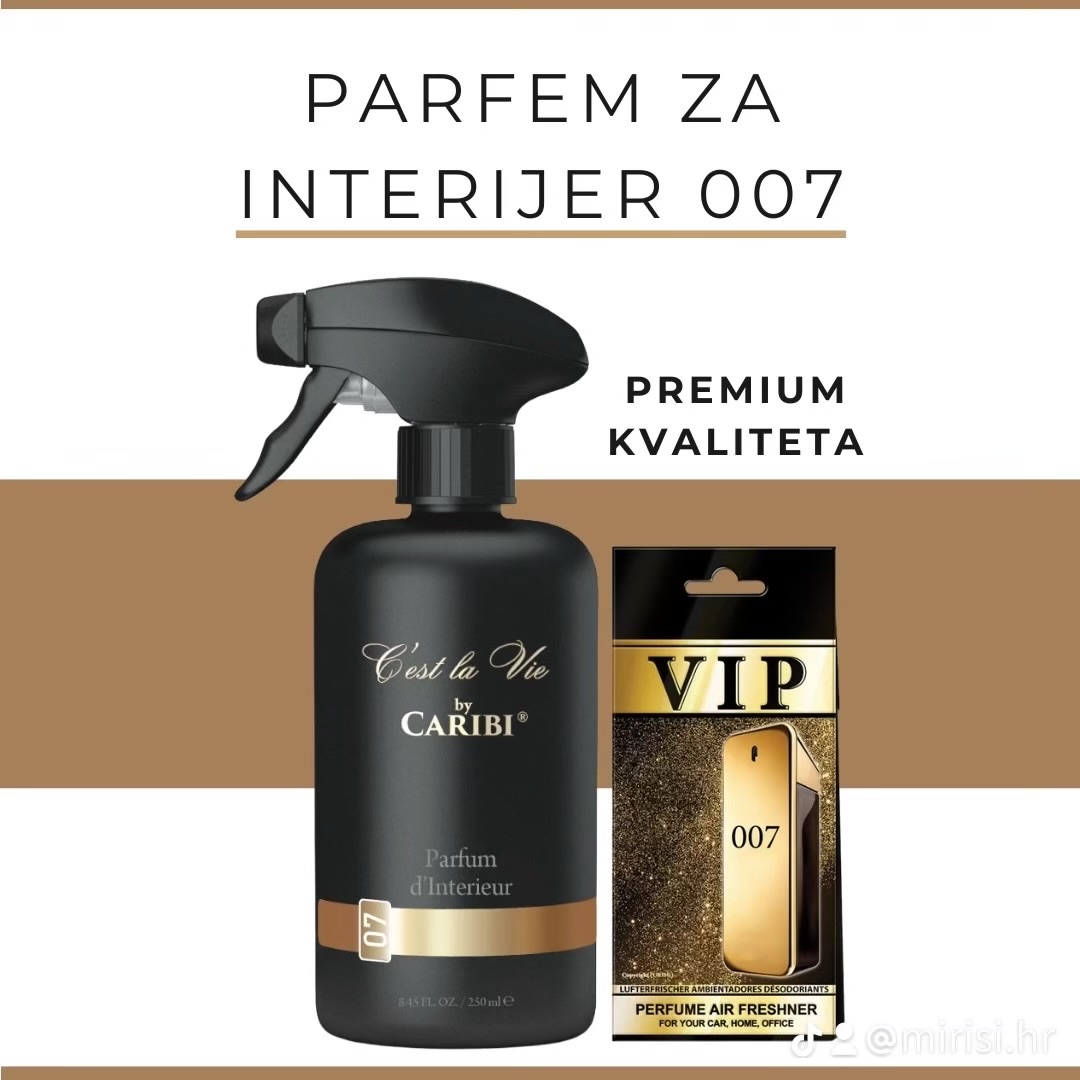 Parfem za interijer 007 osvježava automobil, dom ili ured luksuznim i dugotrajnim mirisom. Praktičan raspršivač omogućuje brzo i jednostavno korištenje, a premium miris ostavlja elegantan dojam u svakom prostoru. Uz svaki kupljeni C’est La Vie dobivate VIP 007 gratis.